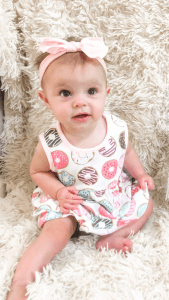 Clare is our newest addition who joined our family in January 2022. She is the sweetest and cutest little thing. She loves watching her brothers and laughing at everything they do. She’s a Gerber puff’s connoisseur and would eat a whole container in one sitting if I let her. (Don’t worry, I won’t let her.) She also loves our dogs and I think she’s already imitating them because she is constantly crawling around our house with toys hanging out of her mouth just like a puppy. Clare joined our family after we suffered 2 heartbreaking miscarriages in a row. So, she is our daily reminder of God’s mercy and steadfast love.